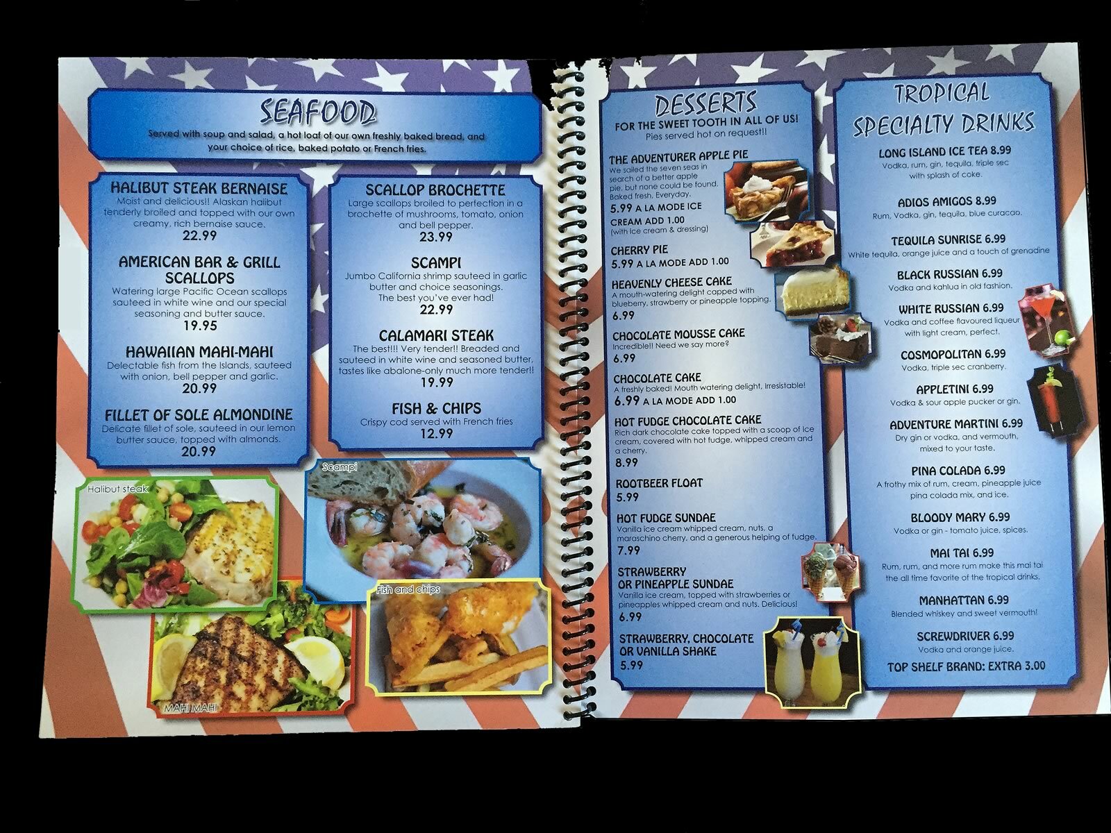 American Bar and Grill INVITES You To Join Us For A Great Dinner Experience... Try Our Famous Shrimp Scampi .. Sizzling Steaks... Juicy Hamburgers... Try Our Nightly Daily Special... Or Just Try Our Wide Variety of Tasty Sandwiches...